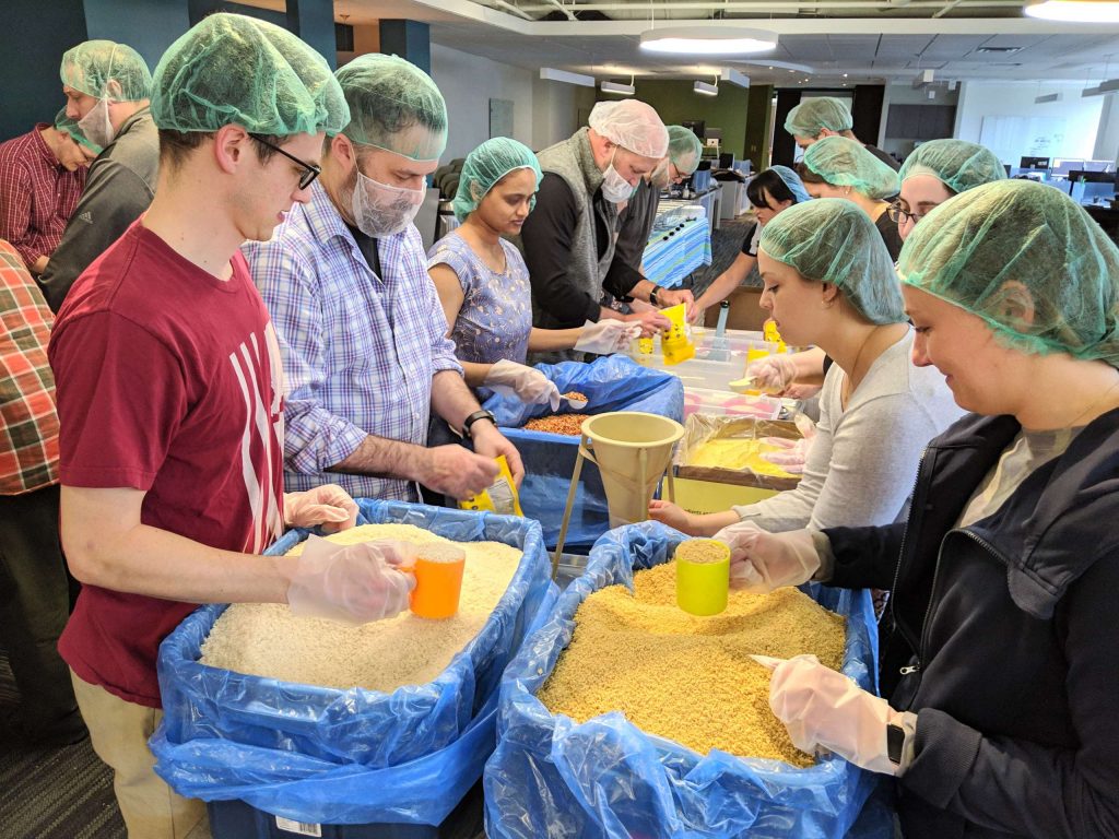 Recently, a wonderful opportunity came our way here at E-g. The folks at Million Meal Movement reached out and asked if we would be interested in packing some meals. It was a no-brainer. We knew right away that we wanted to do an all-hands-on-deck event during one of our monthly all-employees lunches.